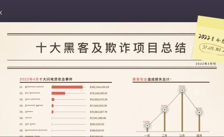 2022年4月,加密世界黑客攻击事件前十(按照损失金额排名)如下: